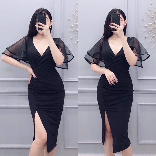 Đầm body tay voan free ship